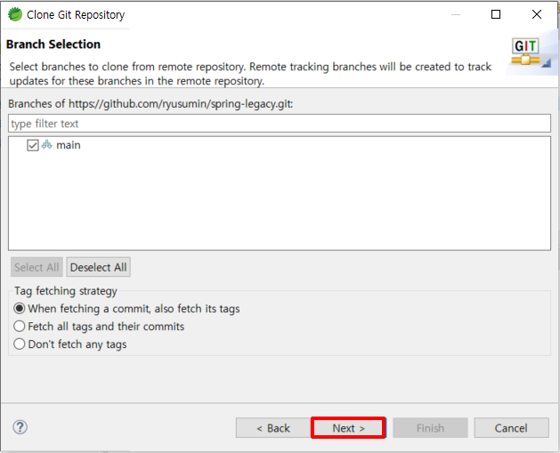 4.STS를 잠깐 두고 GitHub 사이트(홈)로 들어가 연동할 Repo 페이지로 들어가 URL 복사 해분다 빨간칸 클릭