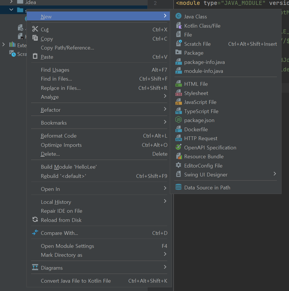 src 오른쪽 클릭 - > New -> Java Class 클릭