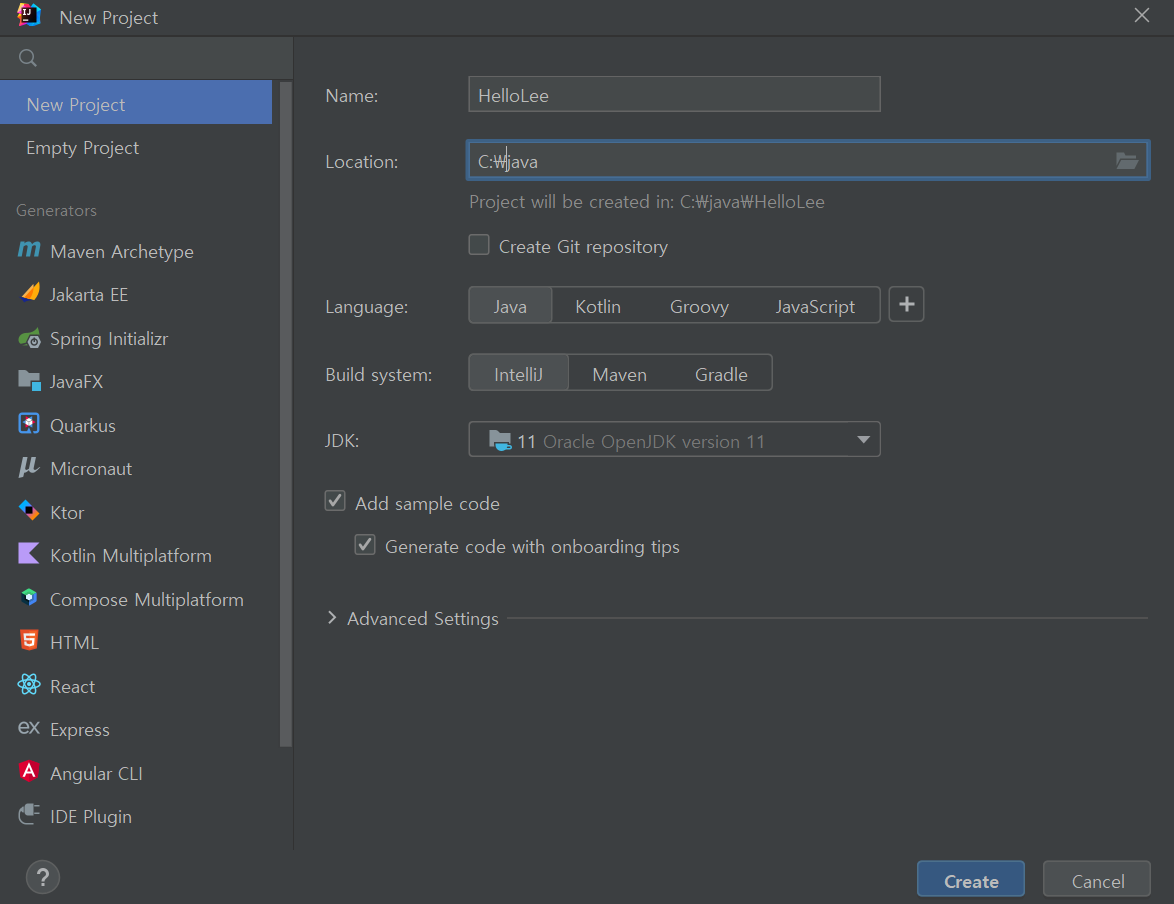 New Project : 새 프로젝트 생성